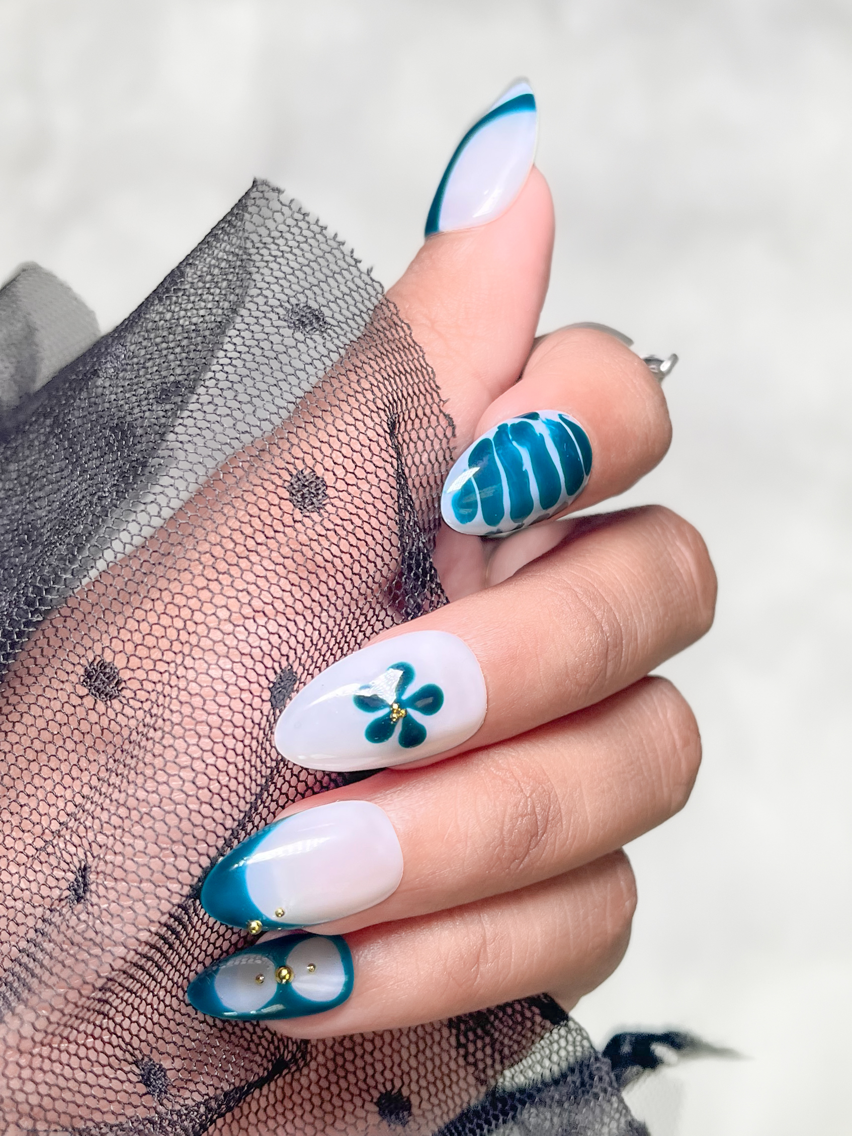 24 Press on Nails faits main.